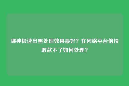 我相信事在人为人定胜天,办法是想出来,路是走出来的,金字塔不是一天建成的,不管什么问题只要有心有毅力总会有办法完美解决的!偶然的成功固然可喜,但那不是我们要的,必然的成功才是我们要的。哪种极速出黑处理效果最好?在网络平台倍投取款不了如何处理?