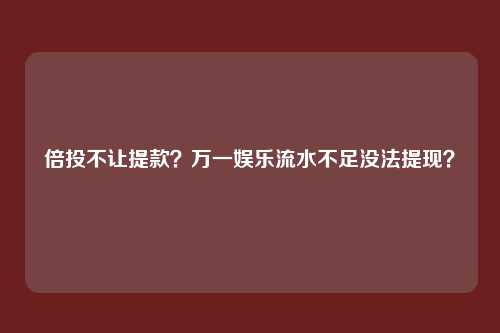 大家一些要小心,不要觉得第三方通道出现问题是正常的,过几天会给你出款,如果超过没法提现个小时都别能出款,都是极有可能被黑了,那咋办?所以网上碰到这种状况,还是需要找到更有实力的很好的处理办法,找我们,不要错失先机。倍投不让提款?万一娱乐流水不足没法提现?