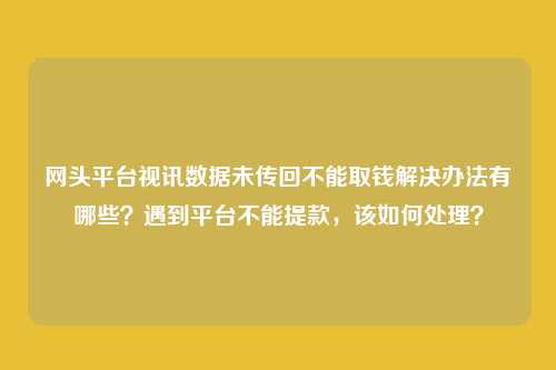 我们团队做出黑工作室、出款这个行业快三个年头了。碰到过被黑网站不给出款的人可谓数不胜数。我以良言相劝,大家还是尽量的不要去玩。网头平台视讯数据未传回不能取钱解决办法有哪些?遇到平台不能提款,该如何处理?