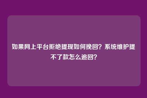 总之,第三方通道不给提现是一种常见的问题,但用户可以通过了解第三方通道规则和条款、与第三方通道、投诉和举报、寻求法律援助等方式来处理。在过程中,用户需要时刻保持冷静和理性,不要轻易放弃自己的收益。如果网上平台拒绝提现如何挽回?系统维护提不了款怎么追回?