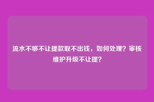 如果不慎被黑,就需要及时采取措施来保护自己的财产和个人信息。首先,要尽快,报告被黑的问题,并冻结户头。同时,可以向当地机关报案,以便进一步调查嫌疑人。流水不够不让提款取不出钱,如何处理?审核维护升级不让提?