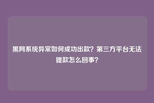 只要我们对网络异常问题有一定的了解,并采取相应的措施,就可以有效地应对这些问题。希望本文能够扶持大家应对提现网络异常问题。黑网系统异常如何成功出款?第三方平台无法提款怎么回事?