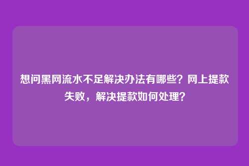 总之,针对流水不足不给提的问题,我们应该采取积极的态度,寻求扶持,向相关投诉,或者自我保护。只有这样,我们才能更好地保障自己的网络和维护社会秩序。想问黑网流水不足解决办法有哪些?网上提款失败,解决提款如何处理?