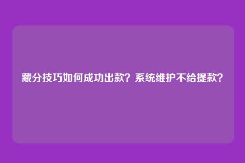 保证自己的能正常登陆而且内可以进行积分转换!然后找相关有能力藏分技巧人员,通过技能手段藏分的把钱出来!