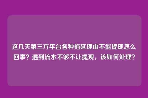 找我们就让您放心,可以帮你解决网上被黑端口维护不给出款,流水不足不能出款的问题,还有涉嫌流水不足等状况,希望大家对于提取失败不给出有一个好的解决办法。这几天第三方平台各种拖延理由不能提现怎么回事?遇到流水不够不让提现,该如何处理?