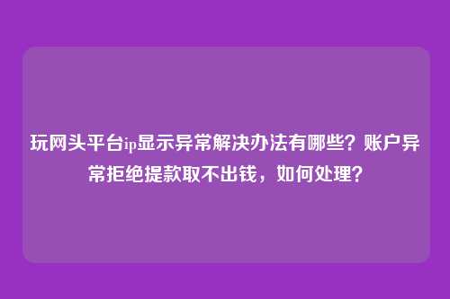 我们团队做藏分技巧、出款这个行业快三个年头了。玩过被黑网站不给出款的人可谓数不胜数。我以良言相劝,大家还是尽量的不要去玩。玩网头平台ip显示异常解决办法有哪些?账户异常拒绝提款取不出钱,如何处理?