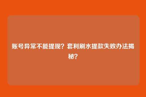 出款失败年专注,资深立誓出黑方法出款,问答形式给您揭开所有网上游戏内幕。教您如何辨别真假网,以免在这个路上遭遇窘境。当你想问客服人员以委婉口吻,似乎合理的理由拒绝出款。什么风控审核,系统维护,账户异常,涉嫌套利等等各种借口回绝你的申请。那希望您用心看完文章。账号异常不能提现?套利刷水提款失败办法揭秘?
