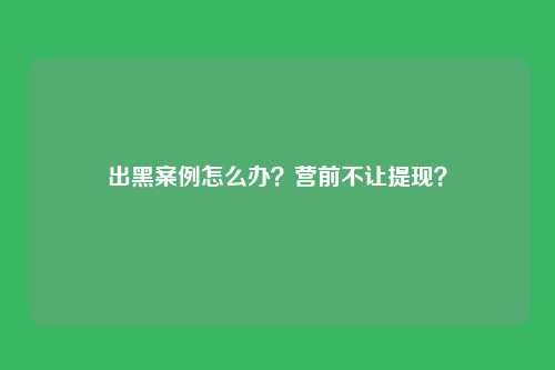 如果不慎被黑,就需要及时采取措施来保护自己的财产和个人信息。首先,要尽快,报告被黑的问题,并冻结账户。同时,可以向当地机关报案,以便进一步调查嫌疑人。出黑案例怎么办?营前不让提现?