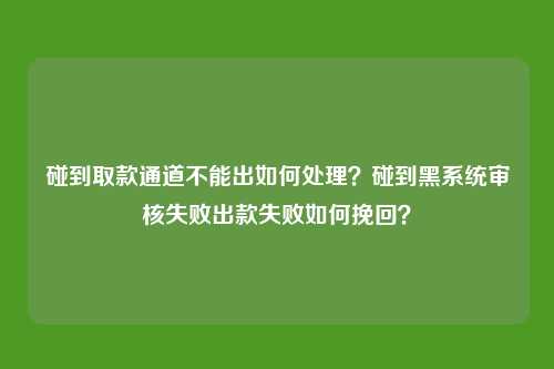 3.有能力人士应对,比如取款通道维护,系统维护了等等,找有能力人士就可以,相当安全快捷安全的,比自己应对成功率高很多,因为他们是有能力的,自己相信没他们有能力的。