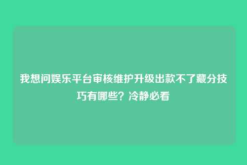 在很好的解决争议的过程中,消费者需要了解相关法律法规,并准备好相关证明文件,以便维护自己的合法权益。在未来的网上交易中,消费者也应该提高自己的风险意识,选择正路的网上娱乐平台进行交易,以避免出现类似的问题。1.第一步,我们需要明确的是,或支付团队的审核维护是出于和防范风险的考虑。因此,我们不应该过于着急或恼怒,而是应该耐心等待。通常事件下,审核维护的时间不会太长,我们可以在等待的过程中尝试相关人员,了解维护的具体原因和时间。